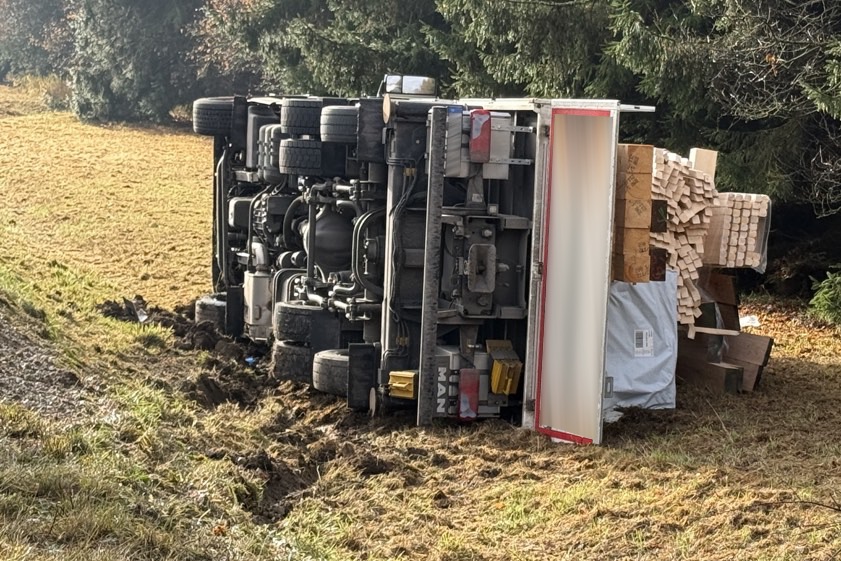Laut Polizei geriet der Lkw heute Vormittag langsam von der Strecke und kippte im Grünstreifen um. Verkehrs-Behinderungen und Stau in Richtung Süden.