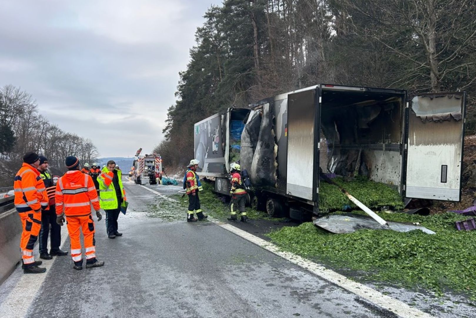 Von der Autobahn-Meisterei sei eine Fachfirma mit der Bergung des Aufliegers sowie der Reinigung der Fahrbahn beauftragt worden. "Weiterführende Ermittlungen zur Brand-Ursache stehen aufgrund der laufenden Bergungs-Arbeiten derzeit noch aus", wurde gegen 15.50 Uhr gemeldet. Die Höhe des insgesamt entstandenen Sachschadens könne momentan noch nicht beziffert werden, "da Beschädigungen der Fahrbahn-Decke nicht ausgeschlossen werden können". An dem Auflieger stehe ein Totalschaden zu Buche; angesiedelt wurde dieser in einer Größenordnung von von 30 000 Euro.