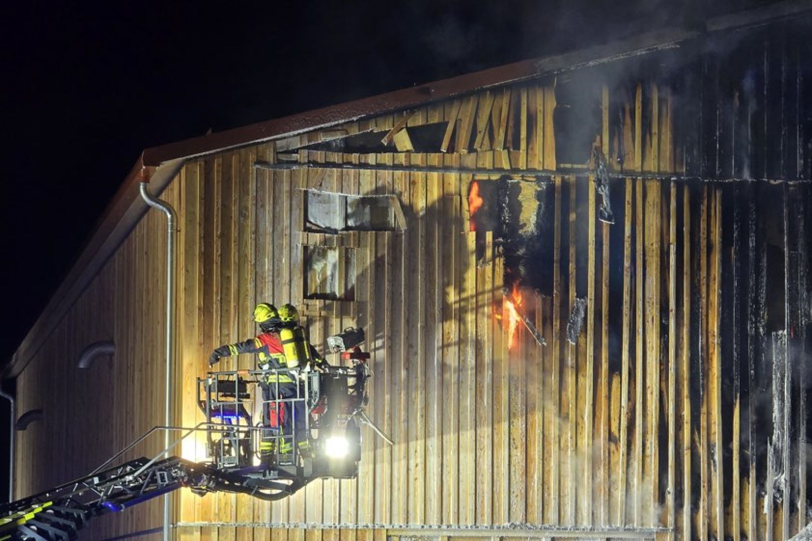 "Zur Sicherstellung der Wasser-Versorgung wurde die Freiwillige Feuerwehr Affecking nachalarmiert", berichtet die örtliche Feuerwehr. Die Floriansjünger aus Bad Abbach seien unterstützend mit einer Drehleiter im Einsatz gewesen. Wegen der Holz-Verkleidung habe sich der Brand rasch ausbreiten können. "Dank des schnellen Eingreifens unserer Einsatzkräfte wurde unter Zuhilfenahme unserer Drehleiter sowie einer Rettungssäge eine gezielte Öffnung geschaffen. Anschließend konnte der Brand vollständig abgelöscht und eine weitere Ausbreitung verhindert werden."