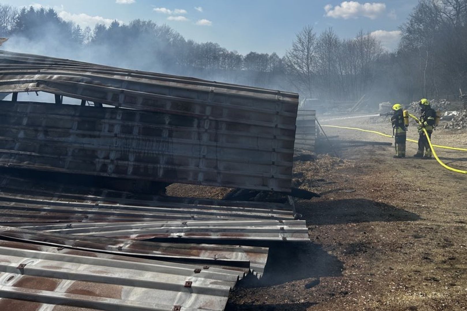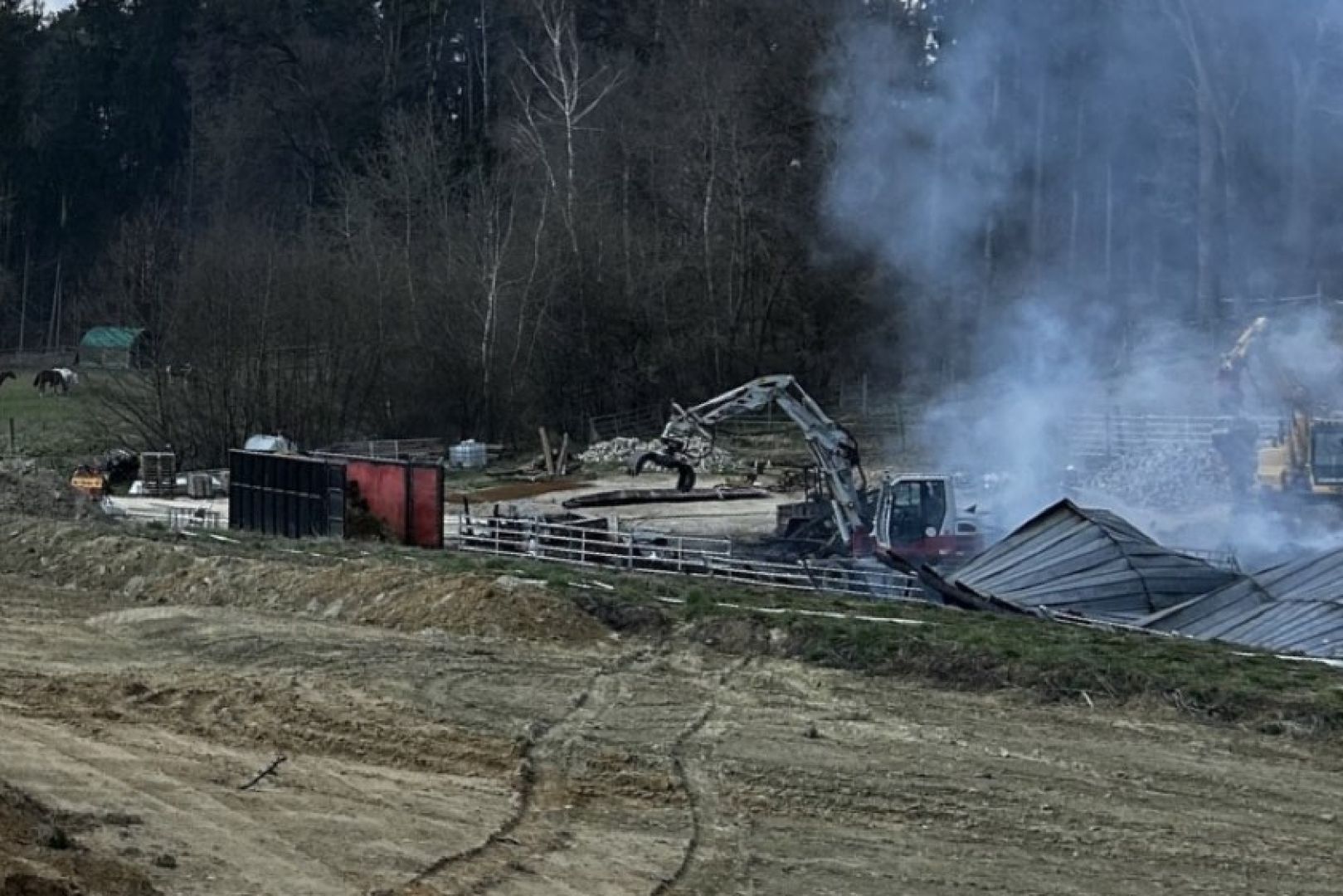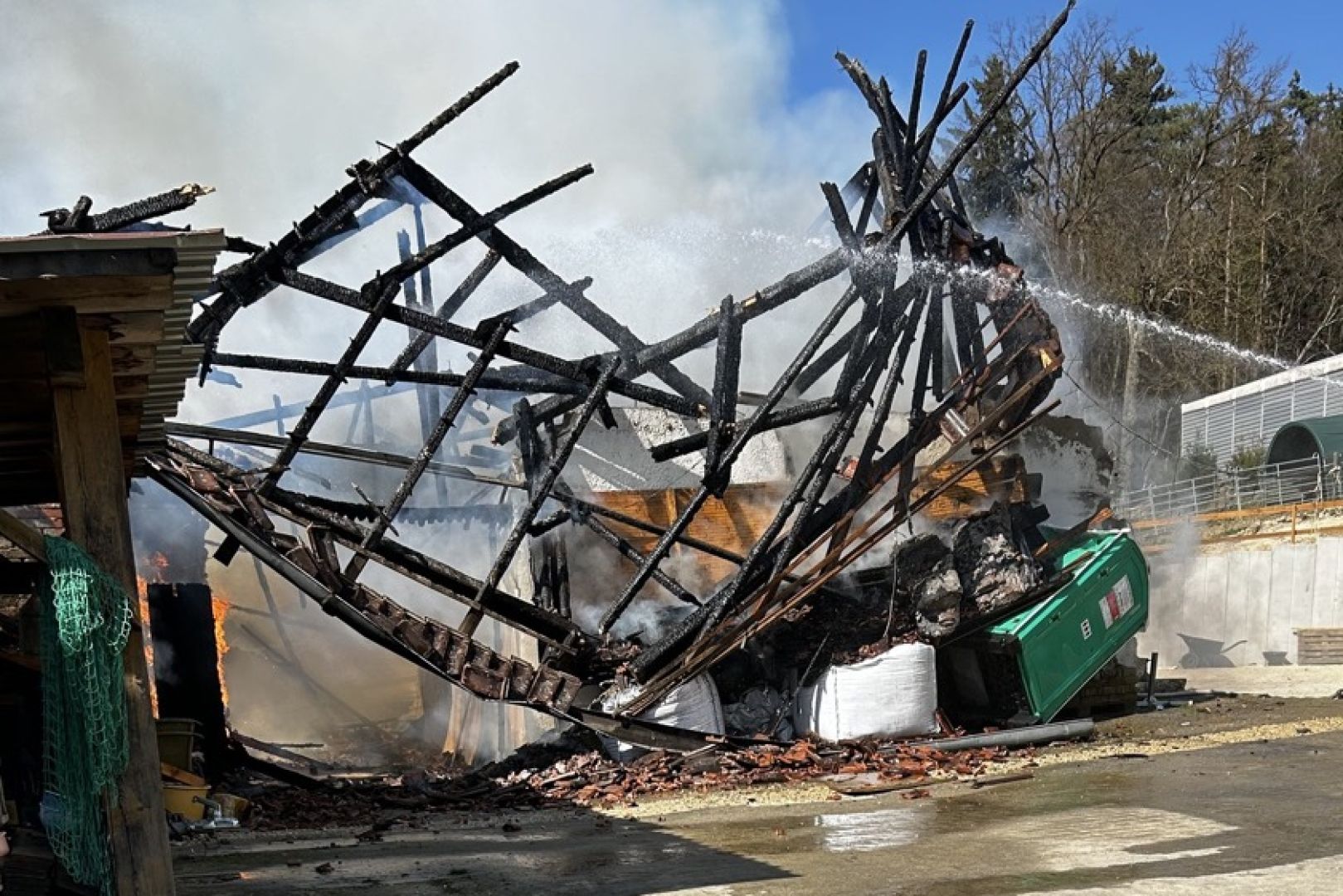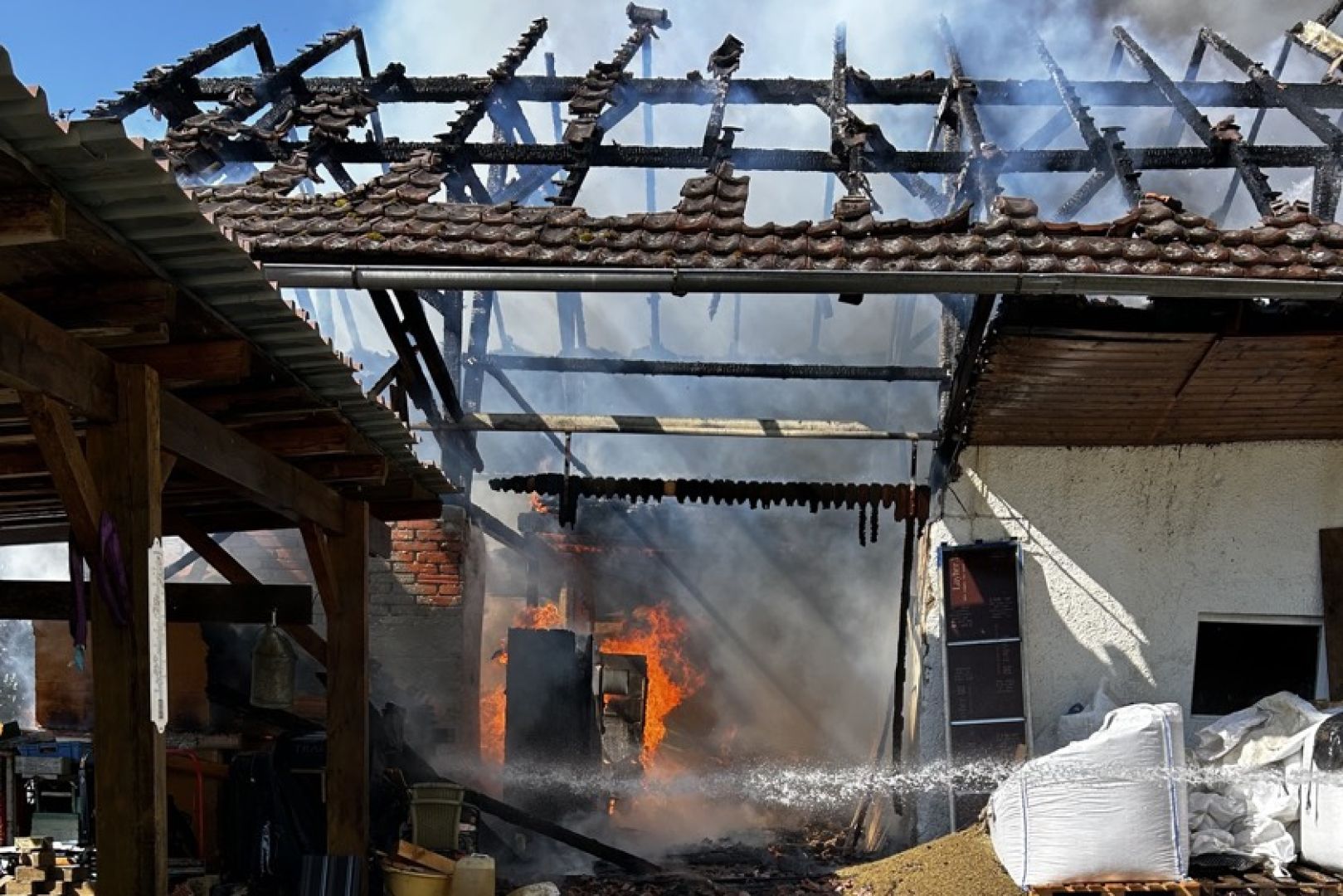 Im weiteren Verlauf des Einsatzes wurden den Angaben zufolge auch Bagger eingesetzt, die die eingestürzten Teile der Scheune abtrugen und zur Seite räumten, um so das weitere Ablöschen des Feuers zu ermöglichen. Neben den Floriansjüngern aus Train waren die Kameraden aus Mallmersdorf, Elsendorf, Mainburg und Neustadt an der Donau sowie die "Unterstützungs-Gruppe örtliche Einsatz-Leitung" vor Ort. Außerdem angerückt waren Polizeibeamte und der Rettungsdienst sowie ein Krisen-Interventions-Team des BRK.