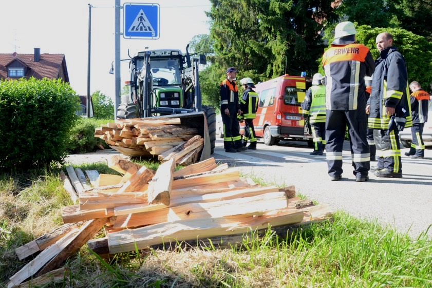 Das Gefährt prallte nach Angaben der Polizei leicht gegen einen Masten. Die mit Holz beladene Traktor-Schaufel rammte offenbar den Masten, an dem die Hinweis-Schilder für einen Zebrastreifen befestigt sind, ehe das Fahrzeug zum Stehen kam. Laut Polizei war kein anderer Verkehrsteilnehmer in das Geschehen verwickelt. Der Unfall selbst war wohl vergleichsweise harmlos. Das wird durch die Mitteilung der Polizei bestätigt, wonach an dem Masten und an dem Traktor "nur geringer Schaden" entstanden sei.