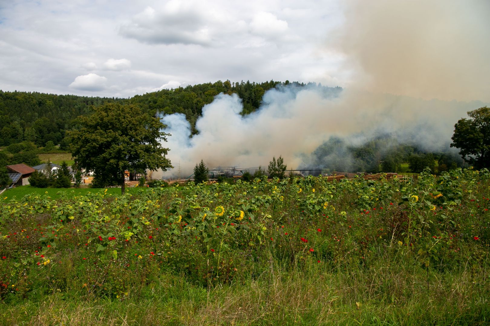 Das Feuer habe dann auf die Betriebshalle des Sägewerks übergegriffen. Diese sei schnell in Vollbrand geraten. Die Rauchsäule war viele Kilometer weit zu sehen. Herbeigeeilt sind zahlreiche Einsatzkräfte, unter anderem von den Feuerwehren aus Unterbürg, Staadorf, Mallerstetten, Hainsberg, Dietfurt, Breitenbrunn, Berching und Neumarkt in der Oberpfalz. Auch der Rettungsdienst und die Polizei waren vor Ort. "Bei den Löscharbeiten erlitt ein Feuerwehrmann leichte Verletzungen", meldete die Polizei.