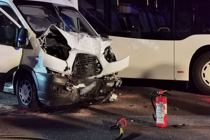 Neben den Polizeibeamten waren ein Notarzt und vier Rettungswagen-Teams sowie insgesamt 26 Einsatzkräfte der Feuerwehr aus Bad Abbach vor Ort. Die Floriansjünger stellten den Brandschutz sicher, banden auslaufende Betriebsstoffe und kümmerten sich um die Beleuchtung der Unfallstelle. Der Kleintransporter sei nach dem Zusammenstoß nicht mehr fahrbereit gewesen und habe abgeschleppt werden müssen. Der ebenfalls ramponierte Omnibus sei noch fahrtüchtig gewesen; Verantwortliche des Bus-Unternehmens kümmerten sich um alles weitere.