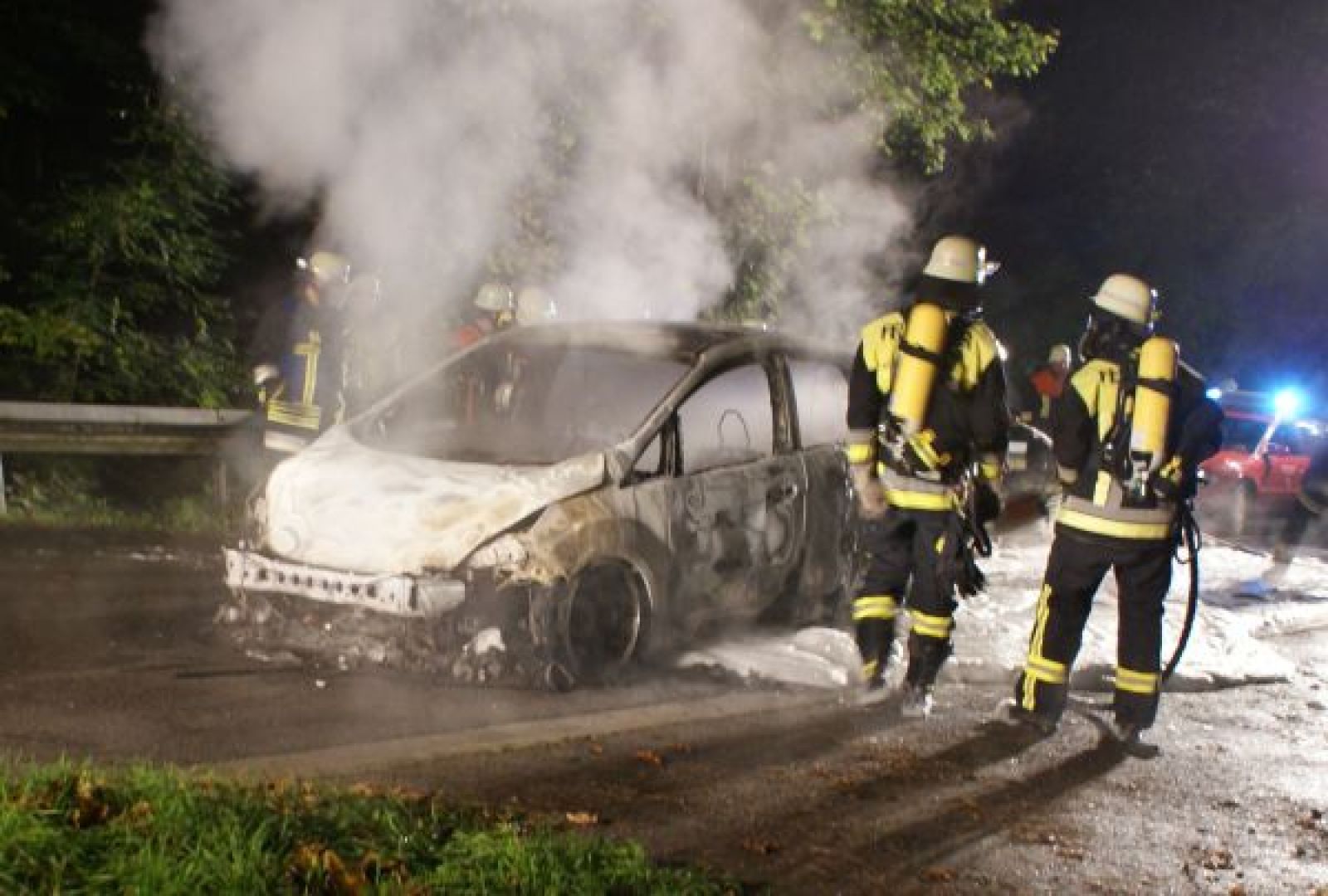 Pkw geriet heute Nacht während der Fahrt zwischen Meihern und St. Gregor in Flammen. Verletzt wurde niemand.