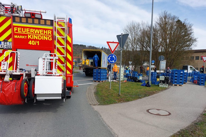 (ty) Eine Riesen-Sauerei hat ein 61 Jahre alter Lkw-Fahrer am gestrigen Vormittag mit einem Verkehrsunfall im Gemeinde-Bereich von Kinding (Landkreis Eichstätt) verursacht. Bei der Einfahrt in einen Kreisverkehr machten sich zig Bierkästen, die er mit seinem Fahrzeug transportierte, selbstständig und knallten auf die Fahrbahn. Das berichtet heute die örtlich zuständige Polizeiinspektion aus Beilngries. Die rechte Bordwand habe sich aus noch ungeklärter Ursache geöffnet, sagte ein Polizei-Sprecher auf Anfrage unserer Redaktion zum Auslöser des Malheurs.