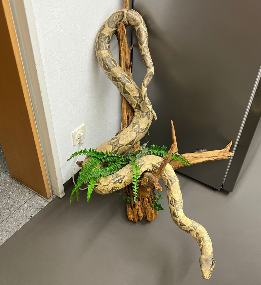 (ty) Eine ziemlich ungewöhnliche Entdeckung hat ein 39-Jähriger aus dem Landkreis Kelheim am gestrigen Sonntag im Gemeinde-Bereich von Neustadt an der Donau gemacht. Wie die Polizei heute berichtet, entdeckte der Mann gegen 12 Uhr mittags in seinem Jagd-Revier in der Nähe des Mauerner Bade-Weihers eine Abgottschlange – auch "Boa constrictor" oder "Königsboa" genannt. Das tote Tier ist den Angaben zufolge ausgestopft sowie an einem Ast befestigt. Bei den hier gezeigten Fotos (siehe auch unten) handelt es sich um von der Polizei herausgegebene Original-Aufnahmen.