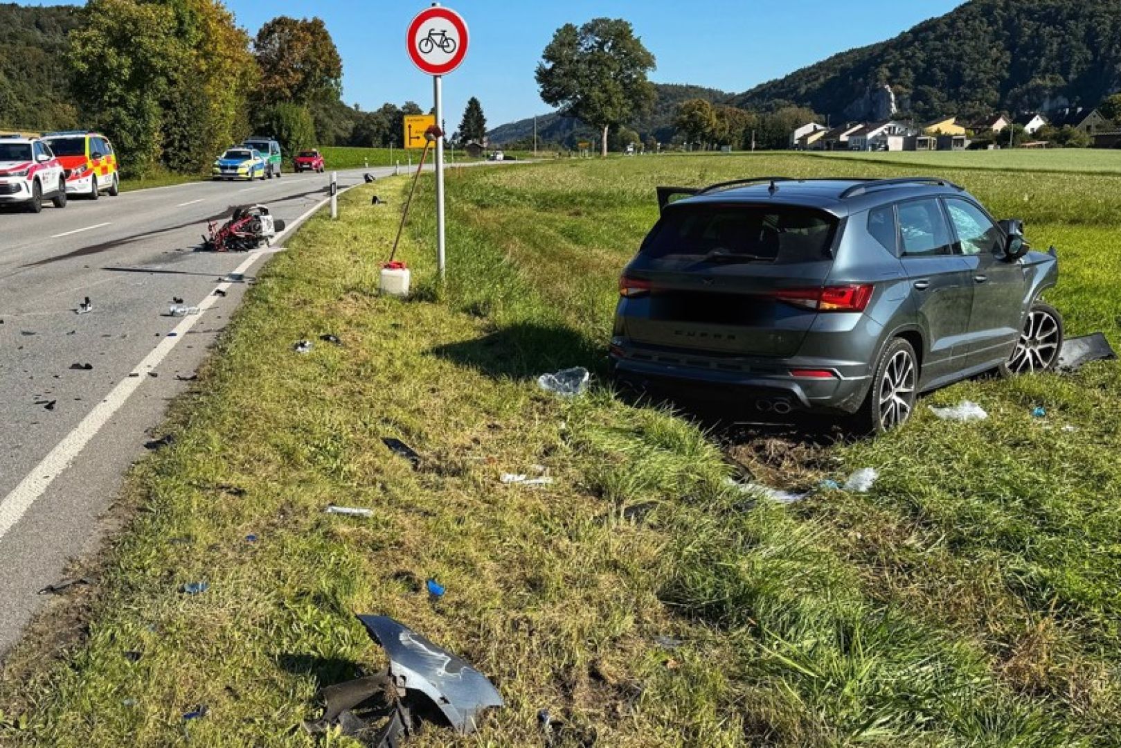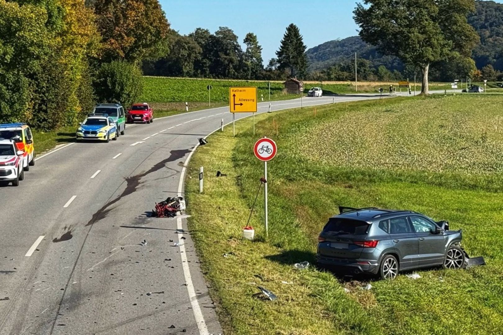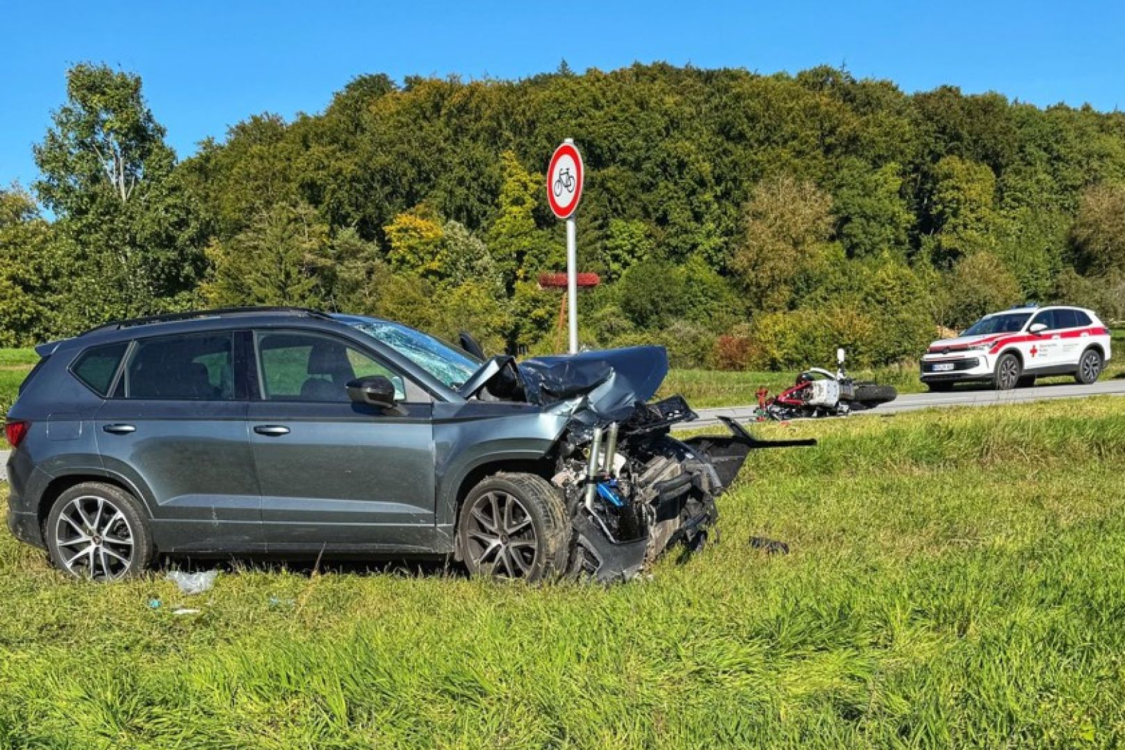 Der Biker kollidierte heute auf der Staatsstraße 2230 mit dem Pkw eines 82-Jährigen, der offenbar zu einem Überhol-Manöver angesetzt hatte.