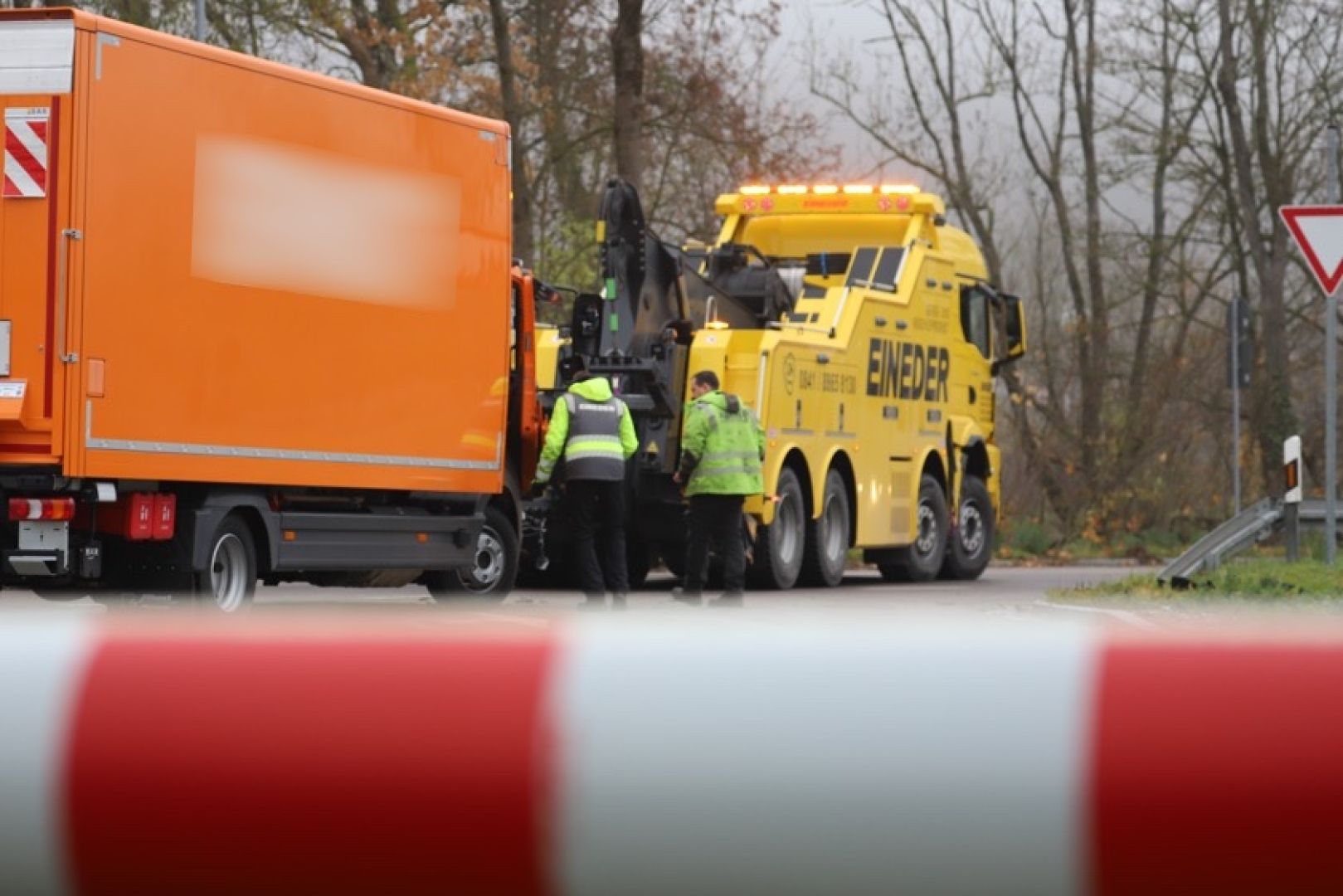 Lkw-Lenker (58) nutzte laut Polizei eine unbeschrankte Abbiege-Spur des Gegenverkehrs für ein Abbiege-Manöver. Er und sein Beifahrer (21) wurden in eine Klinik gebracht.